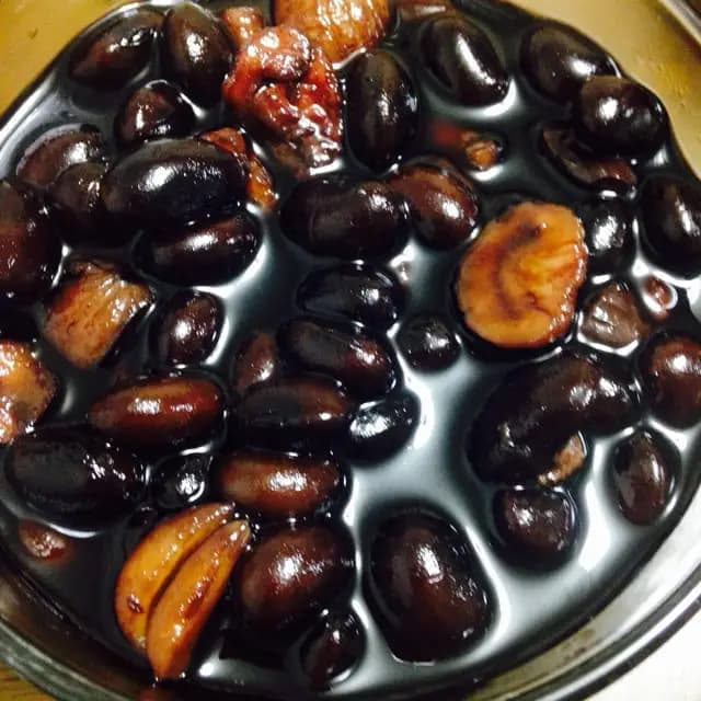 煮る過程で膨らむので、厚口で大きめのお鍋がオススメです。黒豆が煮汁から出てしまうと皺が寄るので差し水や落し蓋をして調整をしてください。勝栗は硬い場合があるので確認して硬ければ黒豆と一緒に少し煮詰めてください。