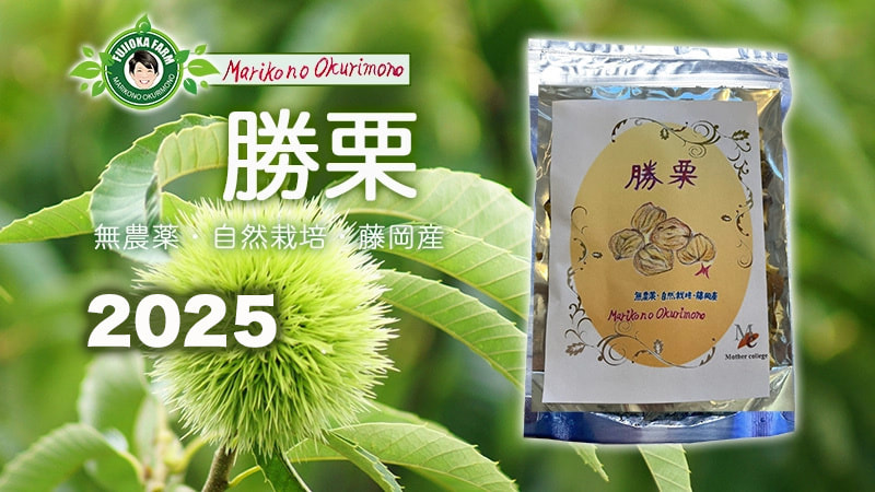 勝栗は、古来、縁起物とされ、祝宴や正月の _祝儀、病気回復の祝いの席で食されてきました。また、栗はビタミンB1やビタミンC、タンニン、カリウム、食物繊維を多く含み、代謝を促進して免疫力向上、肌荒れ予防、老化やがん予防、腸内環境を整える、むくみ、高血圧予防等の効能が期待されます。