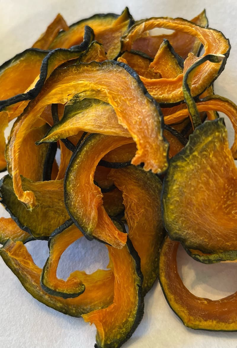 三河高原、尾張丘陵、豊田台地の山々に囲まれた藤岡の地で自然の力に育てられた無農薬栽培のかぼちゃを、スライスして干しかぼちゃにしました。ほくほくしたかぼちゃの甘みがよりいっそう増しました。